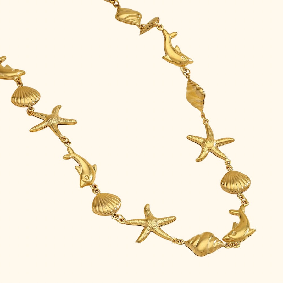 Gold ocean creatures linked necklace