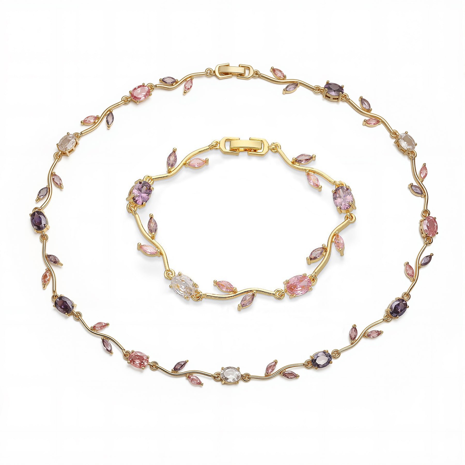 Pink and purple tulip set ( bracelet + necklace ) - gold