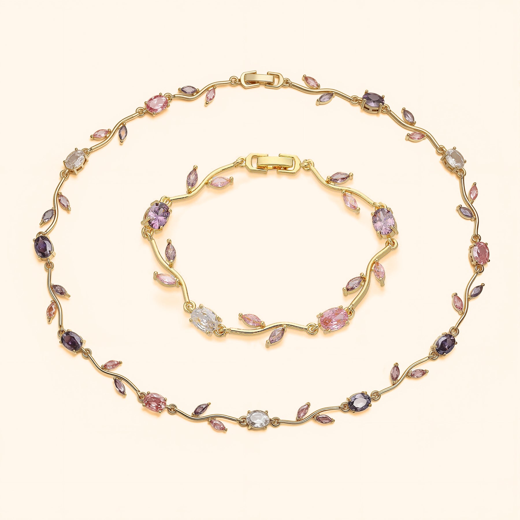 Pink tulip set ( bracelet + necklace ) - gold
